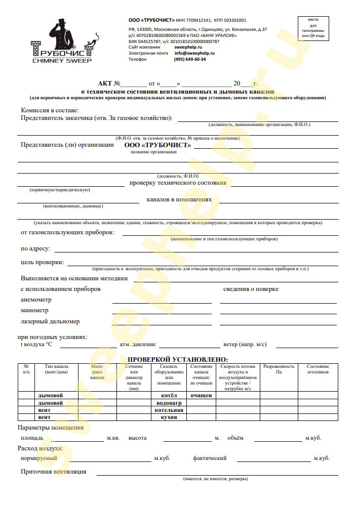 - Акт обследования дымовых и вентиляционных каналов в течение 10 дней с даты его составления подлежит направлению составившей его организацией в адрес заказчика и специализированной организации, а также по запросу органа жилищного надзора (контроля) в его адрес.